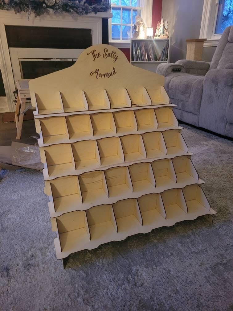 Introducing our 5-Tier Retail Display Stand, the perfect solution for showcasing your products at retail stores, craft fairs, and markets. This beautifully crafted wooden display stand not only elevates the visibility of your items but also adds a touch of elegance to your display. With its sturdy design and collapsible features, this counter display stand is both practical and aesthetically pleasing. Made from high-quality Baltic birch plywood, it is designed to support a variety of products while saving space on your counter. Whether you're displaying handmade soaps, candles, jewelry, or small craft items, our retail display stand ensures your products stand out and attract customers.