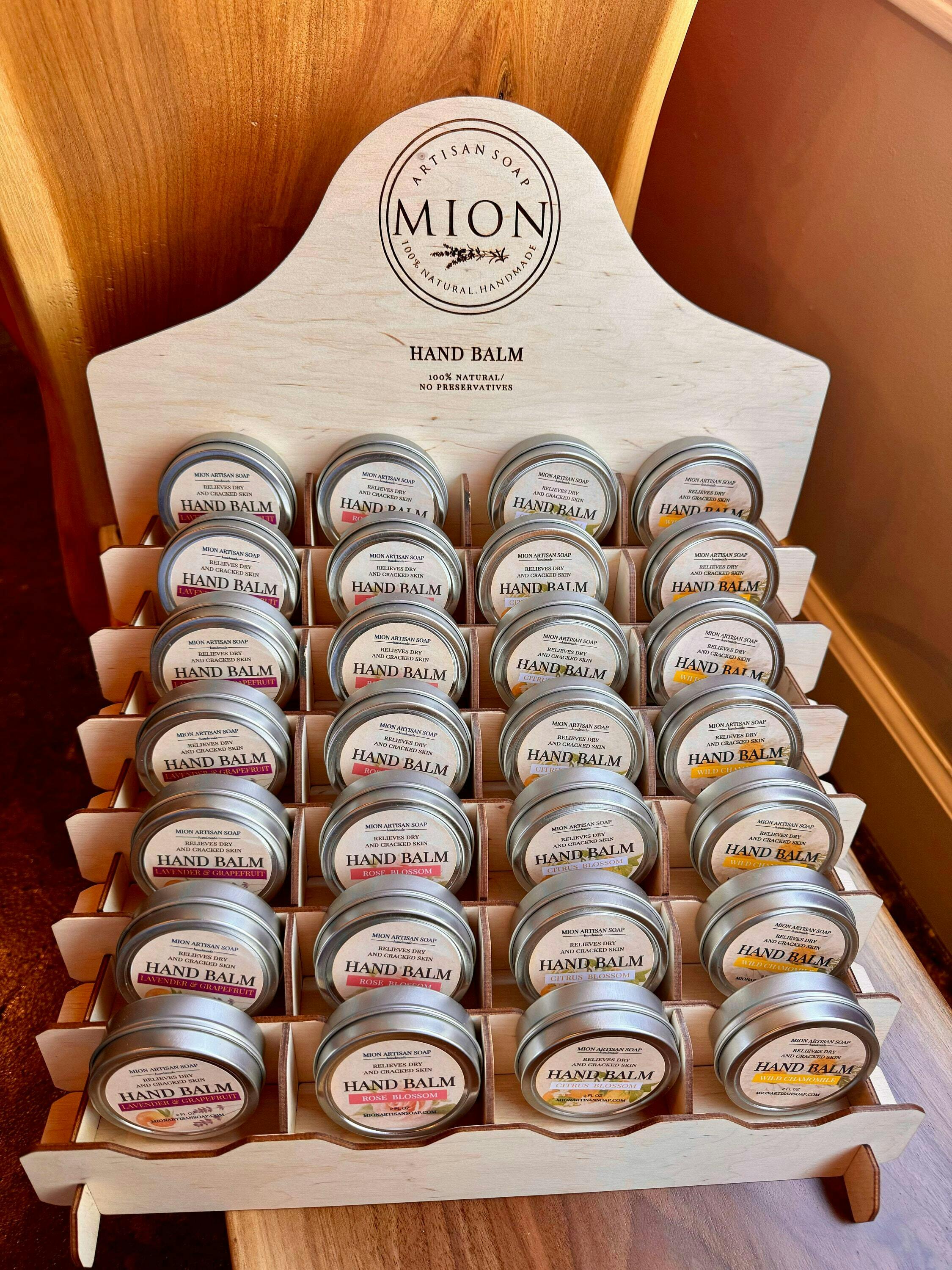 Elevate the presentation of your lip balms and other tin products with our wooden display stand. Its elegant design and customizable options make it a perfect addition to any retail setting. Order now and add a touch of sophistication to your product displays!