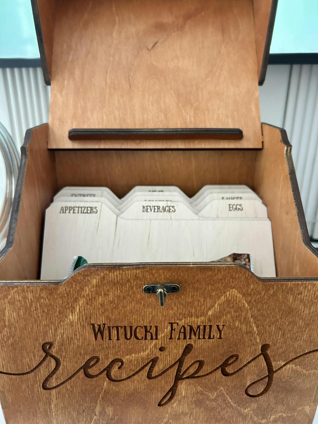 Discover the elegance and utility of our personalized wooden recipe box, crafted specifically for kitchen enthusiasts and culinary experts. This essential kitchen accessory is not just for storing recipes; it's designed to be a timeless piece of decor that adds a touch of vintage charm to any home. With its robust construction and customizable features, it provides a stylish and practical way to preserve your treasured recipes and culinary secrets. Perfect for daily use or as a cherished heirloom, this recipe box ensures your cooking inspirations are always at hand in a beautifully organized manner.